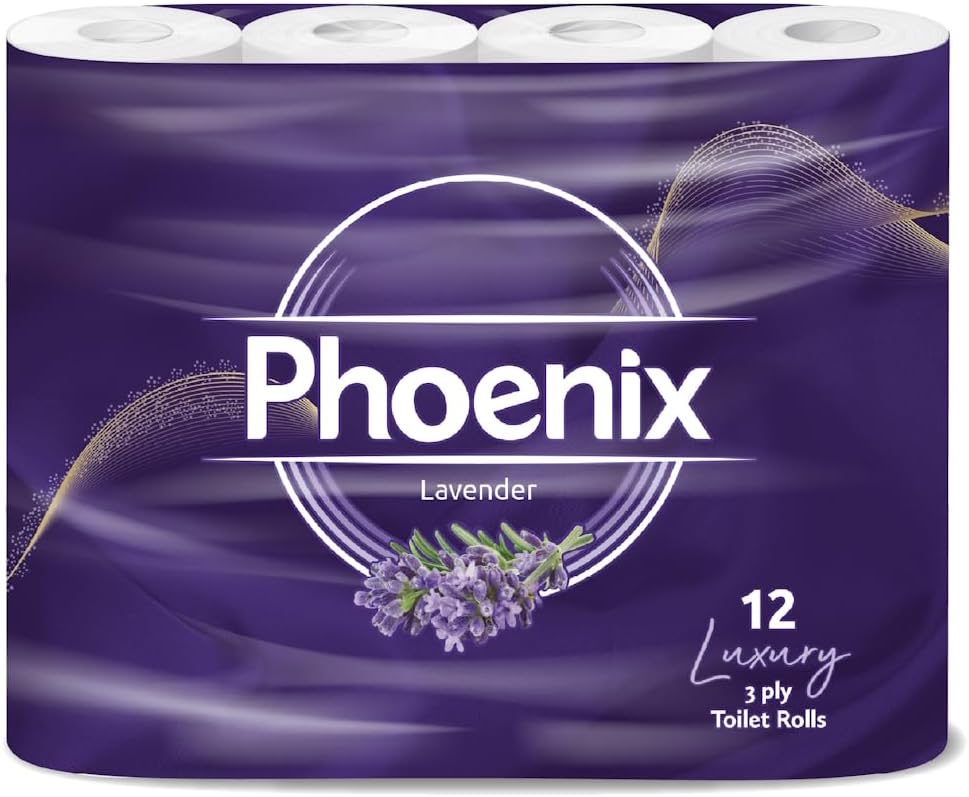 12 Phoenix Soft Lavender Fragranced Luxury Toilet Rolls Bulk Buy – Quilted White 3 Ply Toilet Paper – Pack of 12 Toilet Tissue (60 Quilted Rolls)