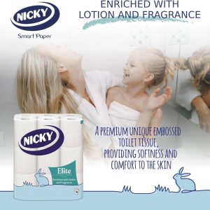 • Nicky Elite is an elegant, high quality scented toilet tissue, bringing a fresh, long-lasting talc fragrance to all bathrooms