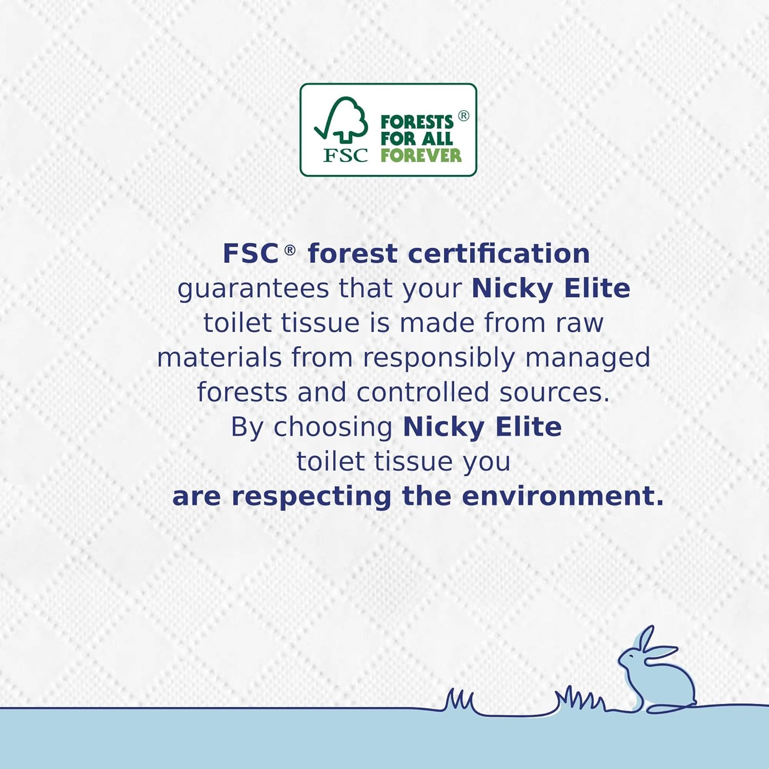 • The FSC forest certification guarantees your Nicky Elite Toilet Tissue is produced with certified raw materials obtained from responsibly managed forests and controlled sources
